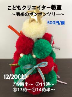 今回のクリエイター教室は、毛糸のポンポンでクリスマスツリーを作ります。