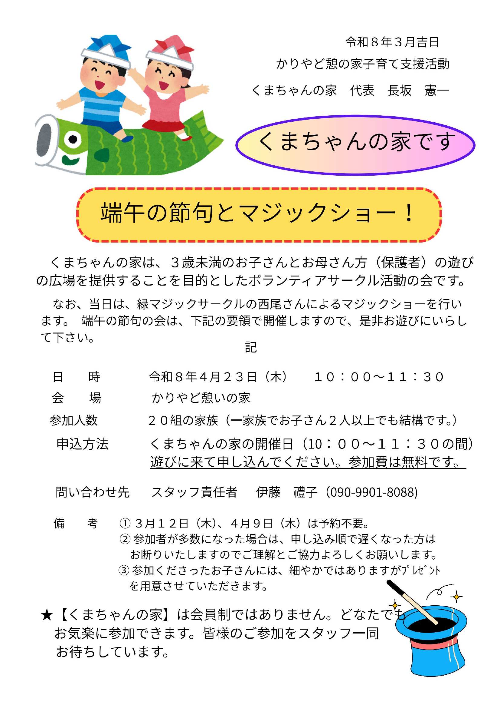 端午の節句の会は、下記の要領で開催しますので、是非遊びにいらしてください。